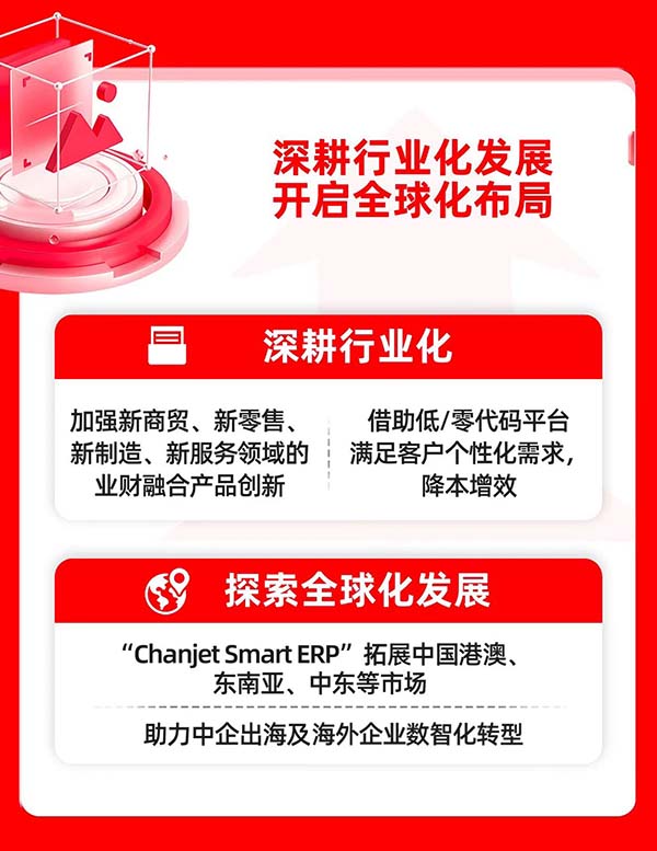 同時,暢捷通積極探索全球化發(fā)展,將“Chanjet Smart ERP”產(chǎn)品拓展至中國港澳地區(qū)、東南亞、中東等市場,助力中企出海及海外本地化企業(yè)的數(shù)智化轉(zhuǎn)型升級。