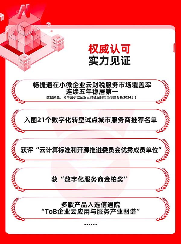 根據(jù)易觀發(fā)布的《中國小微企業(yè)云財(cái)稅服務(wù)市場專題分析2024》,暢捷通在小微企業(yè)云財(cái)稅服務(wù)市場覆蓋率連續(xù)五年穩(wěn)居第一,在用戶滿意度、產(chǎn)品性能及廠商綜合實(shí)力等核心維度的調(diào)研評測中均名列第一。公司還榮獲“云計(jì)算標(biāo)準(zhǔn)和開源推進(jìn)委員會優(yōu)秀成員單位”稱號。此外,暢捷通入選了多項(xiàng)企業(yè)財(cái)稅服務(wù)創(chuàng)新排行榜,多款產(chǎn)品入選中國信通院“ToB企業(yè)云應(yīng)用與服務(wù)產(chǎn)業(yè)圖譜”。