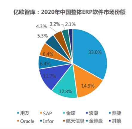 據(jù)Gartner研究顯示,用友是全球企業(yè)級應(yīng)用軟件(ERP)TOP10中唯一的亞太廠商,在全球ERP SaaS市場亞太區(qū)廠商排名第一,也是唯一入選Gartner全球云ERP市場指南的廠商。在億歐智庫公布的數(shù)據(jù)可以看出,用友公司在國產(chǎn)廠商中,無論是整體ERP軟件市場占有率還是高端ERP軟件市場占有率,均穩(wěn)居第一位。