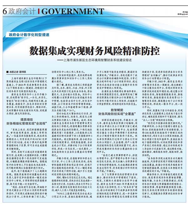 在浦東生態(tài)局副局長黃海華看來,財務(wù)核算高度信息化,能夠更好地了解單位預(yù)算執(zhí)行情況和會計核算情況,不僅有利于提升財務(wù)工作效率,還能提升日常監(jiān)管質(zhì)效,有效防范財務(wù)風險發(fā)生。