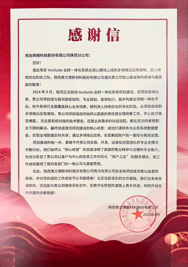 在陜西這片千年秦韻與現(xiàn)代科創(chuàng)交相輝映的熱土上,制造業(yè)的數(shù)智化轉(zhuǎn)型浪潮奔涌向前。陜西美蘭德新材料股份有限公司,作為國內(nèi)炭/炭復(fù)合材料領(lǐng)域的領(lǐng)軍企業(yè),在與用友網(wǎng)絡(luò)科技股份有限公司陜西分公司的長期合作中,始終以深度信任為基礎(chǔ),堅(jiān)持“整體規(guī)劃、分步實(shí)施”策略,穩(wěn)步推進(jìn)數(shù)智化轉(zhuǎn)型。雙方以用友YonSuite全鏈路云服務(wù)為支撐,攜手打造一體化數(shù)智平臺(tái),實(shí)現(xiàn)了業(yè)財(cái)深度融合與高效協(xié)同管理,為陜西制造業(yè)的轉(zhuǎn)型升級(jí)提供了可借鑒的實(shí)踐路徑。
